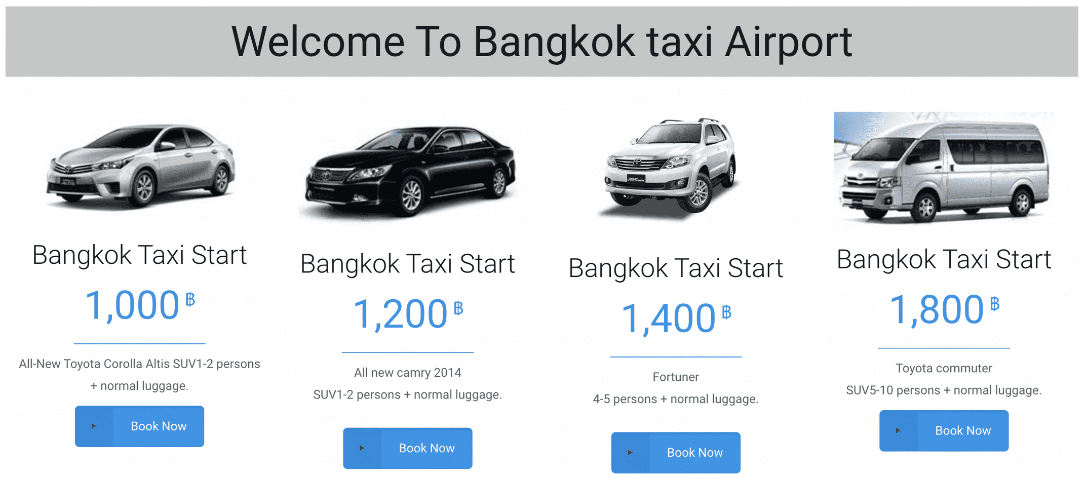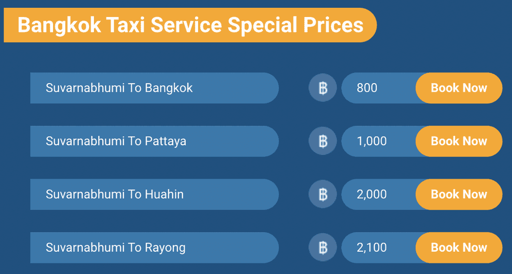 | Suvarnabhumi to Pattaya | 1,000฿ | 1,200฿ | 1,800฿ |
