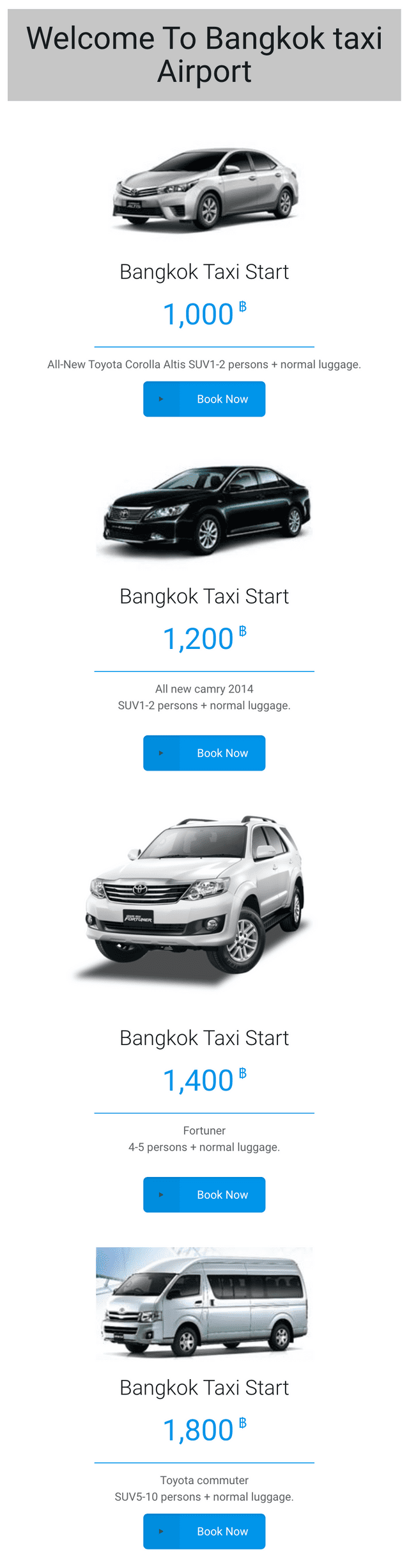 | Pattaya to Suvarnabhumi | 1,000฿ | 1,200฿ | 1,800฿ |